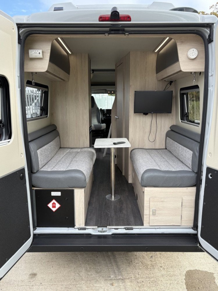 This motorhome comes with Smart TV, 100w solar panel, two leisure batteries, two gas bottles, reversing camera, parking sensors, Apple Play and optional 2 rail Fiamma bike rack.
