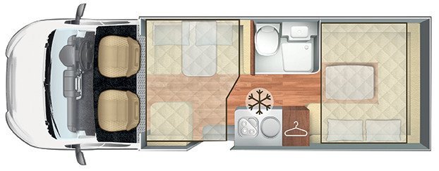This motorhome comes with automatic gearbox, silver cab, black alloy wheels, 4 rail bike rack, Gas It refillable LPG system, TV, solar panel, reversing camera, external BBQ and shower point, Pioneer head unit, upgraded Marta upholstery, cab separation curtain and Isofix.